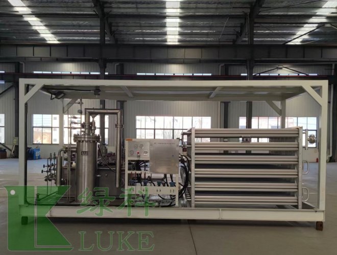 LNG 裝卸系統(tǒng)是放置到一個(gè)裝卸車臺(tái)上的一個(gè)或多個(gè)利用LNG卸車臂、工藝過程管線和閥門、測(cè)量?jī)x表、控制閥、環(huán)境氣化器卸裝LNG產(chǎn)品和通過工藝過程管線和閥門、測(cè)量?jī)x表、批量控制器、控制閥、LNG裝車臂將LNG定量裝入槽車,或從槽車卸載LNG的成橇系統(tǒng)。
